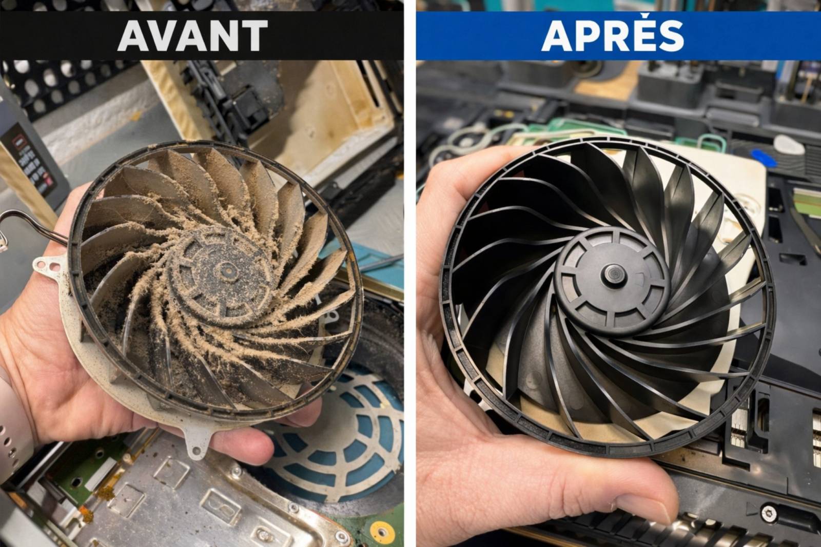 Le résultat ? Un "tapis" se forme sur le radiateur et le ventilateur doit tourner beaucoup plus vite pour compenser, ce qui crée ce bruit de turbine insupportable. Un nettoyage complet est le seul moyen de prévenir une surchauffe grave qui pourrait endommager les circuits imprimés de manière irréversible.
